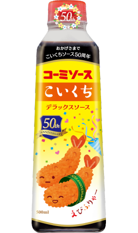 こいくちソース誕⽣50周年!「とろりとした濃い味」はそのままに、「⾹味ソース」の「⾹り」にこだわって、よりおいしくリニューアルしました。