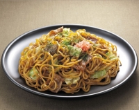 肉かすのうま味とだし粉(いわし・かつお)の風味をきかせた、富士宮風のやきそばを、お楽しみください。