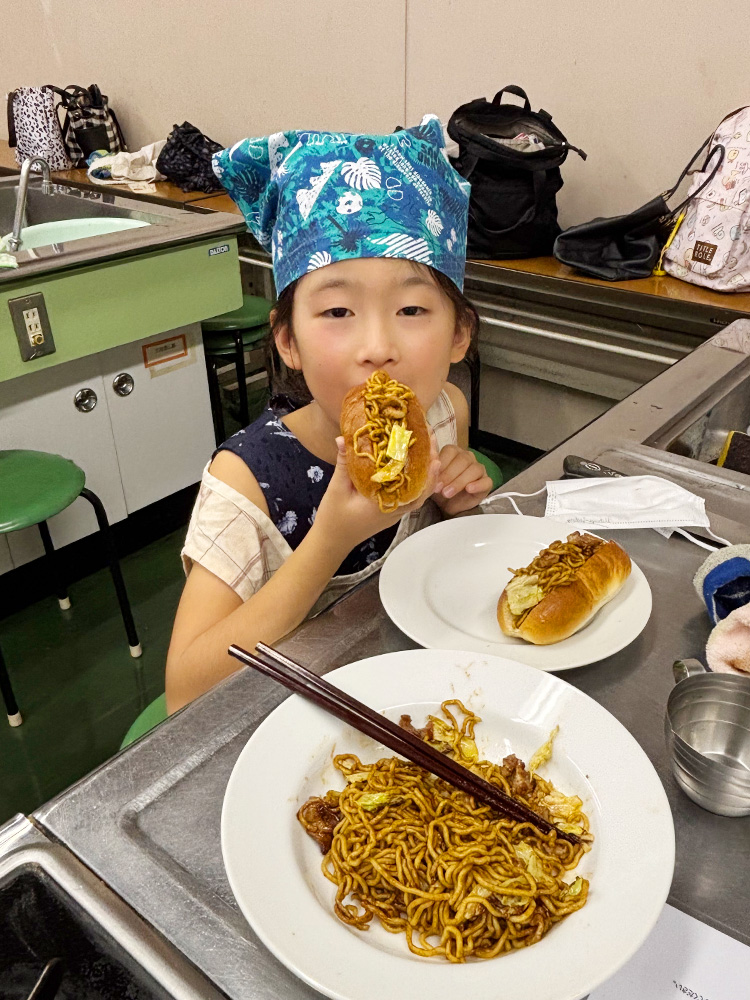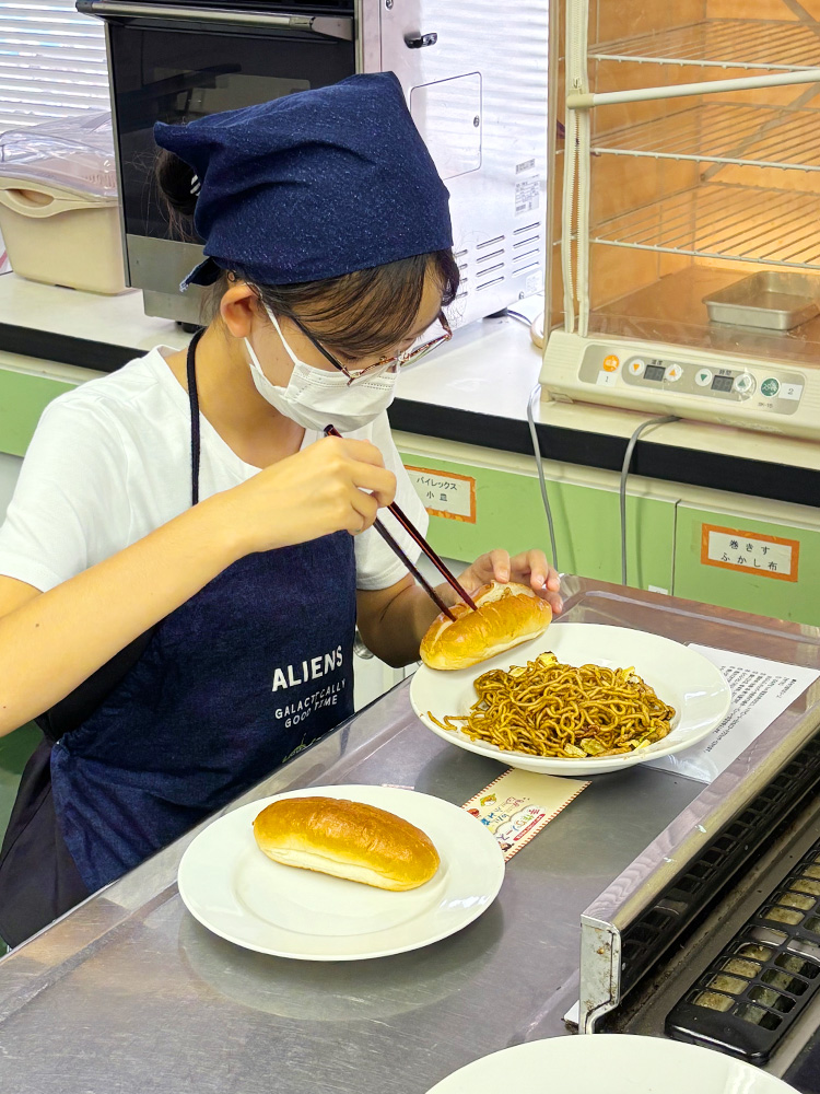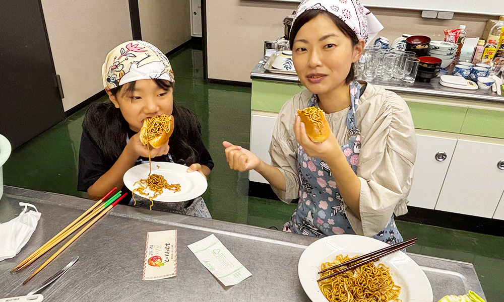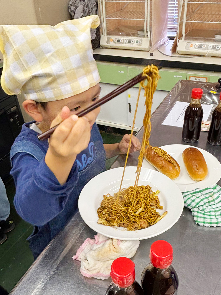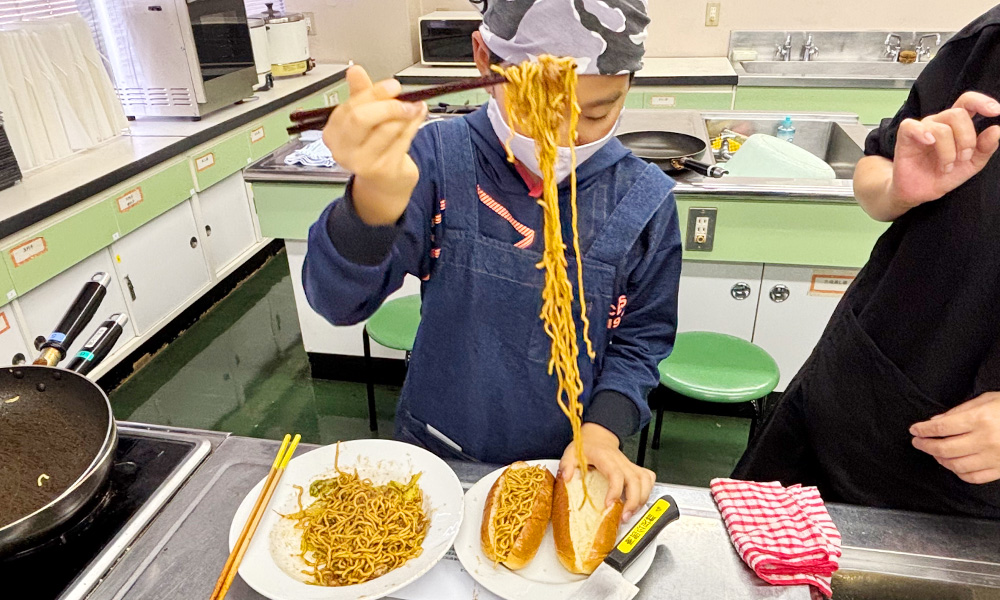 その後、自分たちで作った焼そばソースを使って焼そば作り!犬山グルメの『犬山ドッグ』の焼そばパンも作りました。