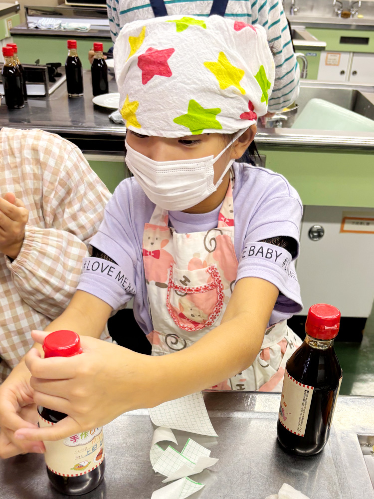 瓶の口まで焼そばソースを入れたら、キャップをしてラベルを貼って完成です!